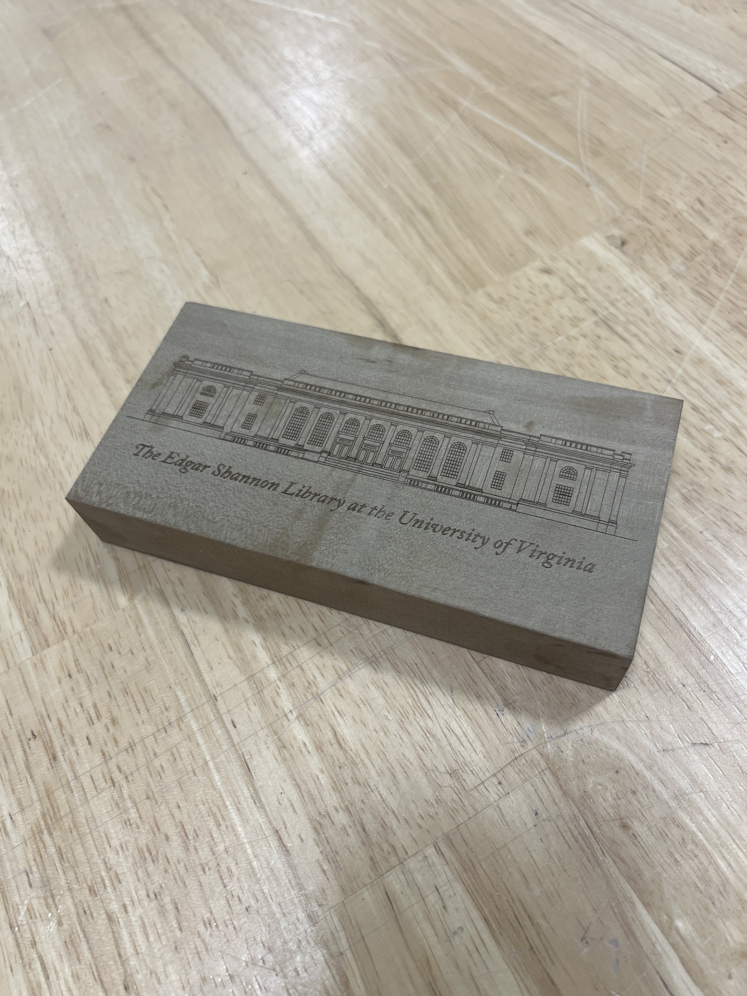 Made of a solid chunk of timber from UVA’s trees, these desk organizers hold a variety of items with charming presence and sturdy surety.